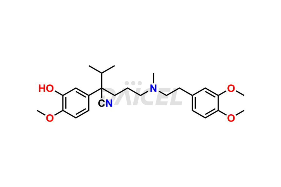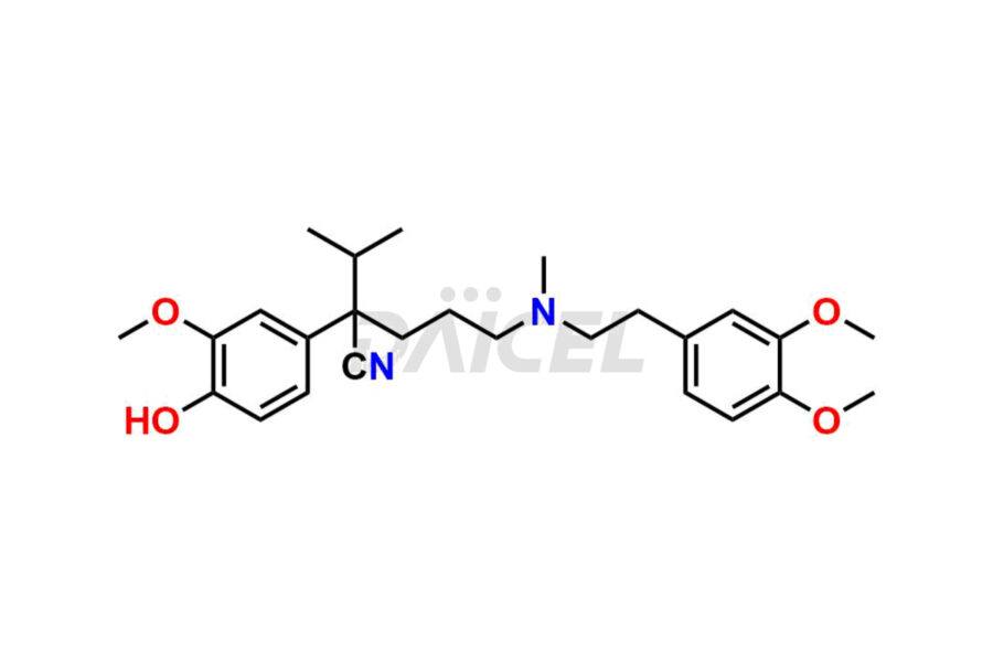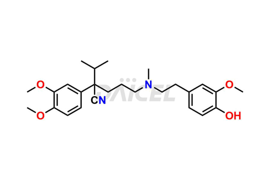 Daicel provides a comprehensive Certificate of Analysis (CoA) for Verapamil impurity standards, such as 2-(3,4-dimethoxyphenyl)-2-isopropyl-5-oxopentanenitrile, 2-(3,4-dimethoxyphenyl)-5-((4-hydroxy-3-methoxyphenethyl)(methyl)amino)-2-isopropylpentanenitrile, 2-chloro-N-(3,4-dimethoxyphenethyl)-N-methylethan-1-amine, 3-bromo-N-(3,4-dimethoxyphenethyl)-N-methylpropan-1-amine and many more.