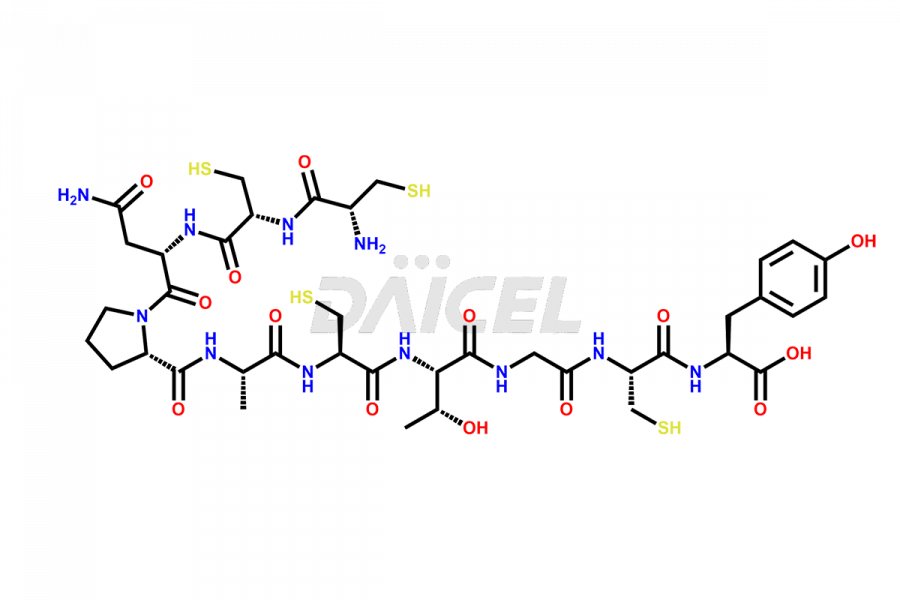 At Daicel, we provide a Certificate of Analysis (CoA) from a cGMP-compliant analytical facility for Linaclotide impurities, Ac-Linaclotide, Asp(7)-Linaclotide, Cys(1)-IMD-Linaclotide, and Des-Tyr(14)-Linaclotide, along with complete characterization data including 1H NMR, 13C NMR, IR, MASS, and HPLC purity. Upon request, we provide 13C-DEPT and CHN. Also, we provide a complete characterization report upon delivery. Daicel offers highly pure isotope-labeled standards of Linaclotide in bioanalytical research and BA/BE studies with isotope data in CoA.