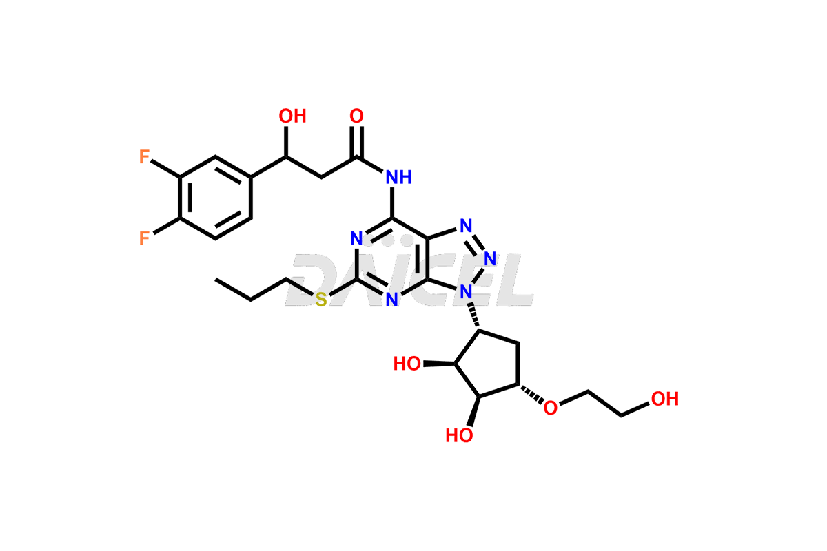 | IUPAC NAME | 3-(3,4-difluorophenyl)-N-(3-((1R,2S,3S,4S)-2,3-dihydroxy-4-(2-hydroxyethoxy)cyclopentyl)-5-(propylthio)-3H-[1,2,3]triazolo[4,5-d]pyrimidin-7-yl)-3-hydroxypropanamide |