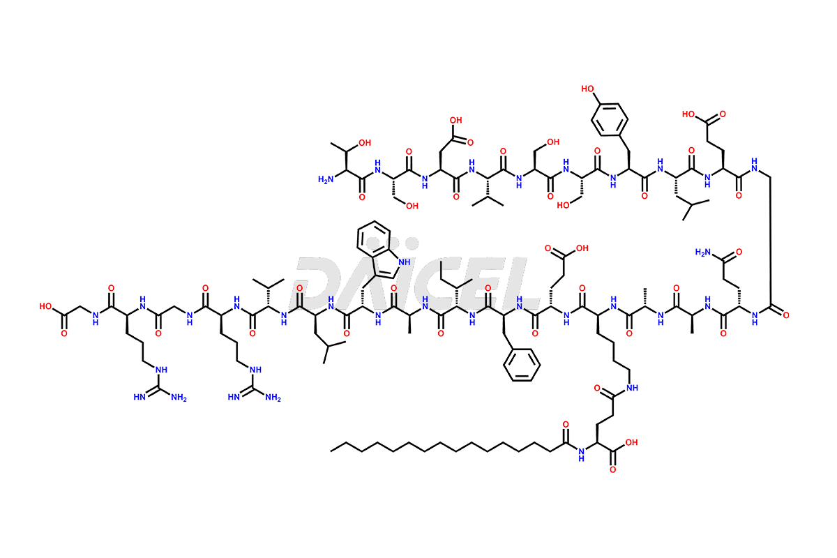 | IUPAC Name | Thr-Ser-Asp-Val-Ser-Ser-Tyr-Leu-Glu-Gly-Gln-Ala-Ala-Lys(γ-Glu-palmitoyl)-Glu-Phe-Ile-Ala-Trp-Leu-Val-Arg-Gly-Arg-Gly-OH |