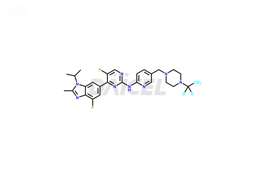 | IUPAC NAME | N-(5-((4-(ethyl-d5)piperazin-1-yl)methyl)pyridin-2-yl)-5-fluoro-4-(4-fluoro-1-isopropyl-2-methyl-1H-benzo[d]imidazol-6-yl)pyrimidin-2-amine |