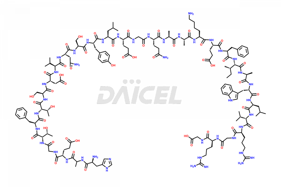 IUPAC NAME H2N-His-Ala-Glu-Gly-Thr-Phe-Thr-Ser-Asp-Val-Asn-Ser -Tyr-Leu-Glu-Gly-Gln-Ala-Ala-Lys-Glu-Phe-Ile-Ala-Trp-Leu-Val-Arg-Gly-Arg-Gly-OH