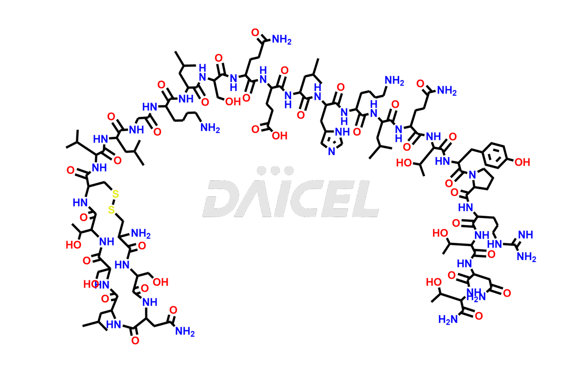 | IUPAC NAME | H-Cys-Ser-Asp-Leu-Ser-Thr-Cys-Val-Leu-Gly-Lys-Leu-Ser-Gln-Glu-Leu-His-Lys-Leu-Gln-Thr-Tyr-Pro-Arg-Thr-Asn-Thr-Gly-NH2 (Disulfide bridge between Cys1 and Cys7) |