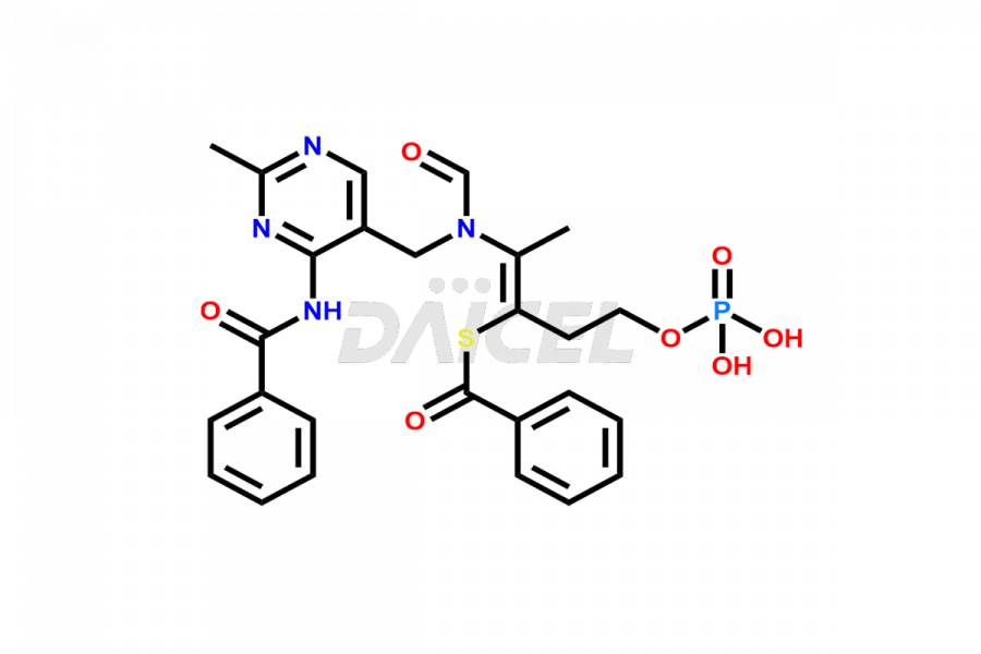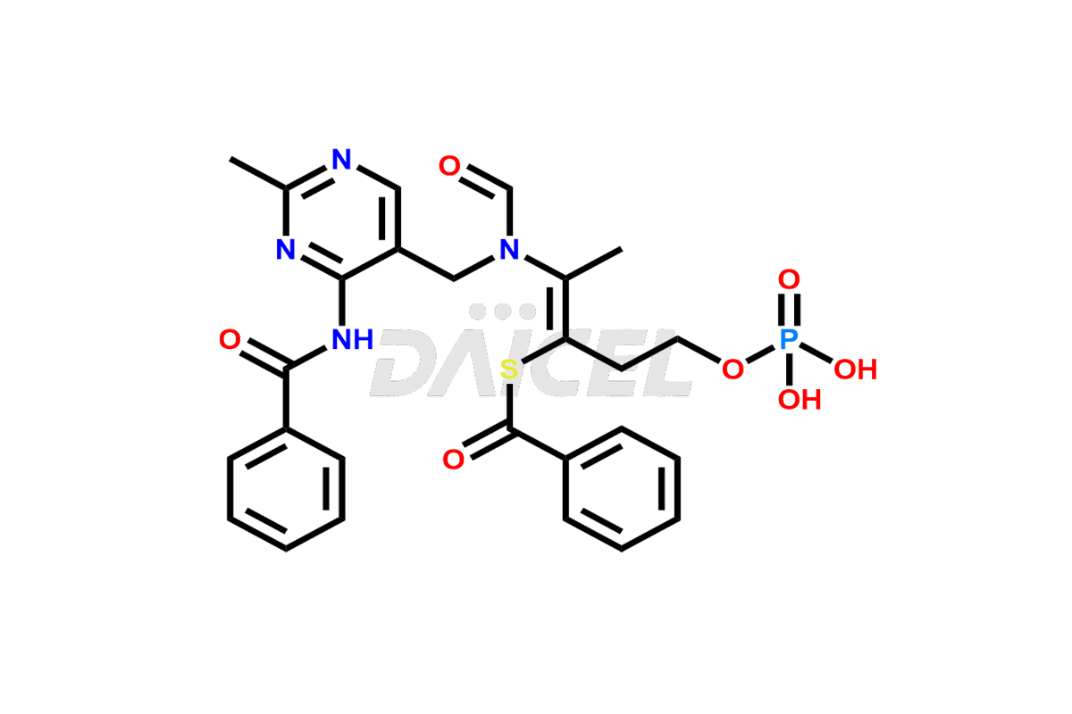 | IUPAC NAME | (Z)-S-(2-(N-((4-benzamido-2-methylpyrimidin-5-yl)methyl)formamido)-5-(phosphonooxy)pent-2-en-3-yl) benzothioate |