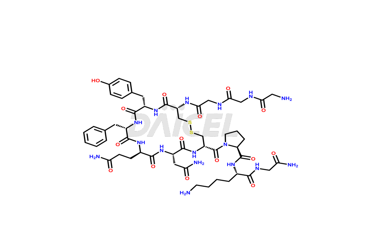 | IUPAC NAME | "H-Gly-Gly-Gly-D-Cys-Tyr-Phe-Gln-Asn-Cys-Pro-Lys-Gly-NH2 (Disulfide Bridge between Cys4-Cys9)" |