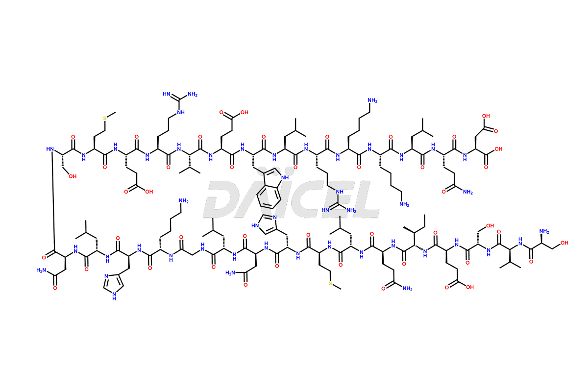 | IUPAC NAME | H-Ser-Val-Ser-Glu-Ile-D-Gln-Leu-Met-His-Asn-Leu-Gly-Lys-His-Leu-Asn-Ser-Met-Glu-Arg-Val-Glu-Trp-Leu-Arg-Lys-Lys-Leu-Gln-Asp-Val-His-Asn-Phe-OH |