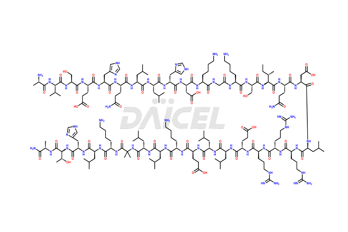 | IUPAC Name | H-Ala-Val-Ser-Glu-D-His-Gln-Leu-Leu-His-Asp-Lys-Gly-Lys-Ser-Ile-Gln-Asp-Leu-Arg-Arg-Arg-Glu-Leu-Leu-Glu-Lys-Leu-Leu-Aib-Lys-Leu-His-Thr-Ala-NH2 |