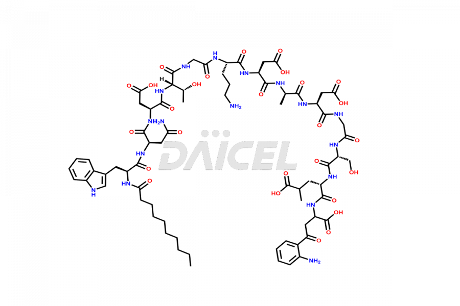 IUPAC Name N-decanoyl-L-tryptophyl-D-asparginyl-L-aspartyl-L-threonylglycyl-L-ornathyl-L-aspartyl-D-alanyl-L-aspartylglycyl-D-serylthreo-3-methyl-L-glutamyl-3-anthraniloyl-L-alanine