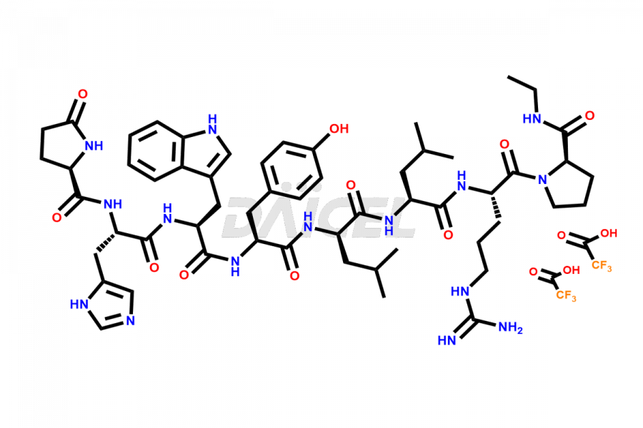 | IUPAC NAME | 5-Oxo-L-prolyl-L-histidyl-L-tryptophyl-L-tyrosyl-D-leucyl-L-leucyl-L-arginyl-N-ethyl-L-prolinamide. Trifluoro acetate salt |