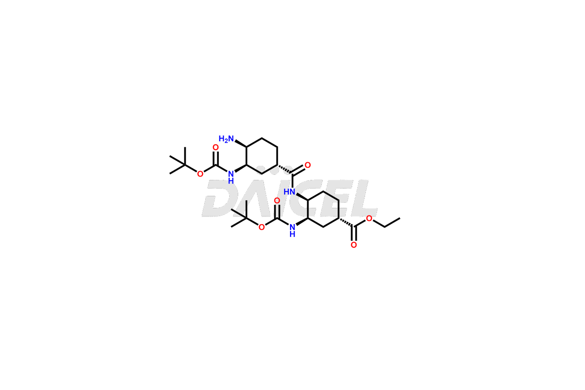 | IUPAC Name | ethyl (1S,3R,4S)-4-((1S,3R,4S)-4-amino-3-((tert-butoxycarbonyl)amino)cyclohexane-1-carboxamido)-3-((tert-butoxycarbonyl)amino)cyclohexane-1-carboxylate |