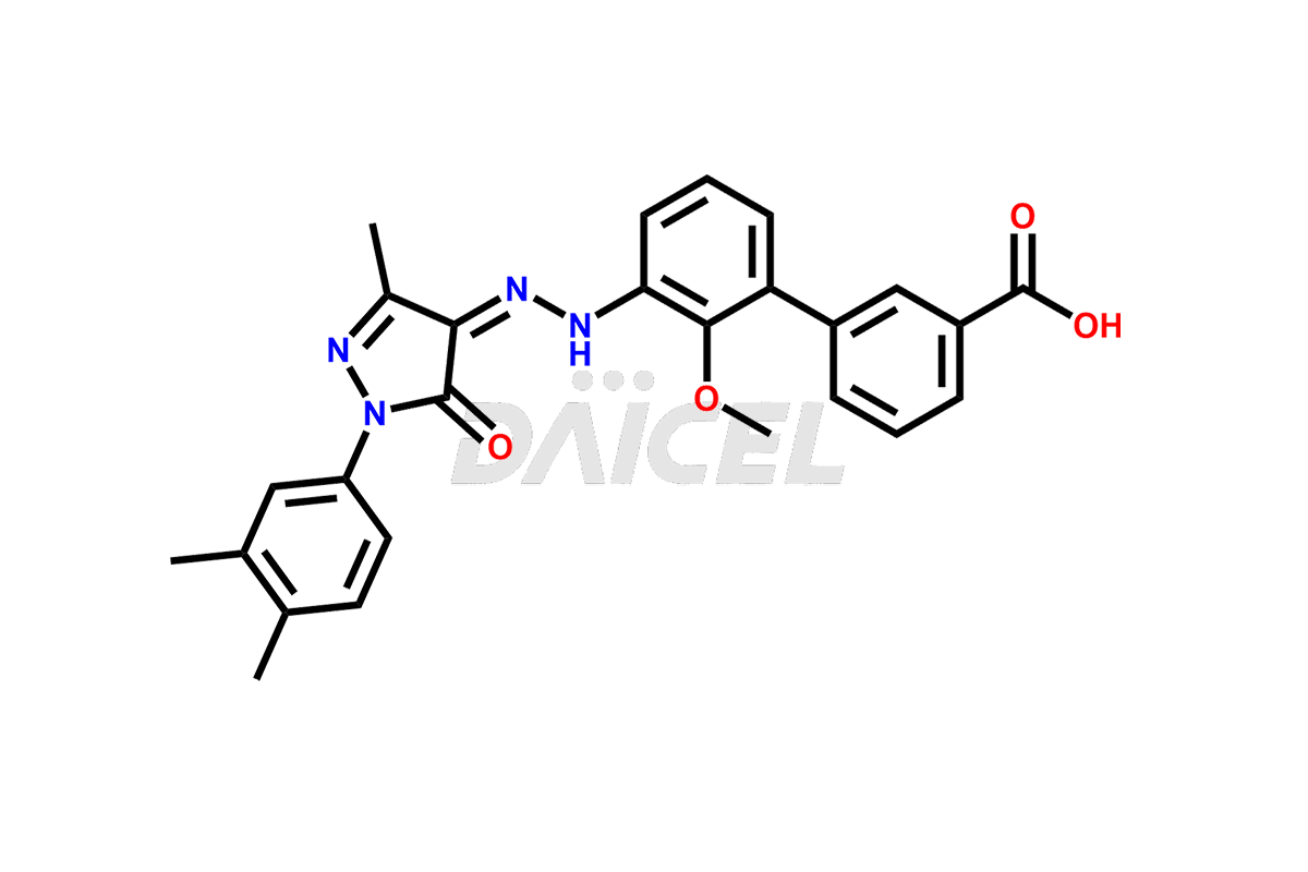 | IUPAC Name | (Z)-3'-(2-(1-(3,4-dimethylphenyl)-3-methyl-5-oxo-1,5-dihydro-4H-pyrazol-4-ylidene)hydrazineyl)-2'-methoxy-[1,1'-biphenyl]-3-carboxylic acid |