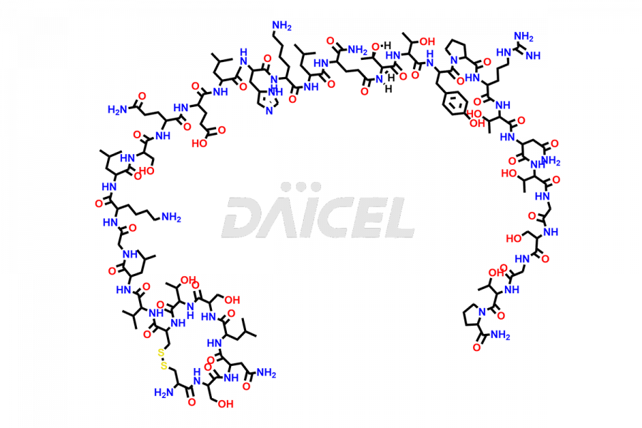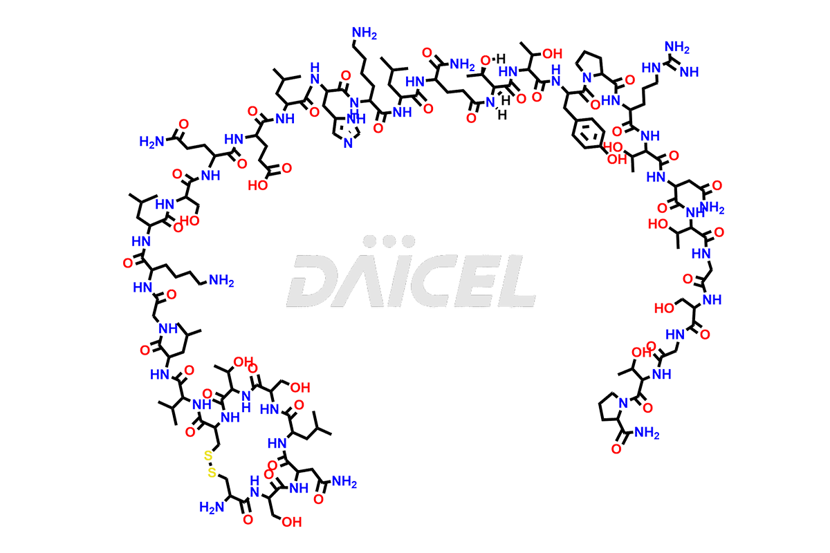IUPAC NAME H-Cys-Ser-Asn-Leu-Ser-Thr-Cys-Val-Leu-Gly-Lys-Leu-Ser-Gln-Glu-Leu-His-Lys-Leu-Gln-Thr-Thr-Tyr-Pro-Arg-Thr-Asn-Thr-Gly-Ser-Gly-Thr-Pro-NH2 (Disulfide bridge between Cys1 and Cys7)