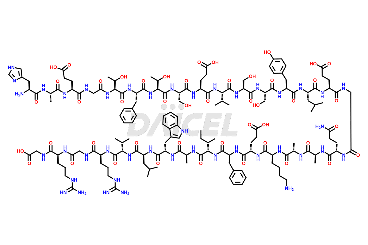 | IUPAC NAME | His-Ala-Glu-Gly-Thr-Phe-Thr-Ser-Glu-Val-Ser-Ser-Tyr-Leu-Glu-Gly-Gln-Ala-Ala-Lys-Glu-Phe-Ile-Ala-Trp-Leu-Val-Arg-Gly-Arg-Gly-OH |