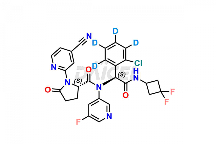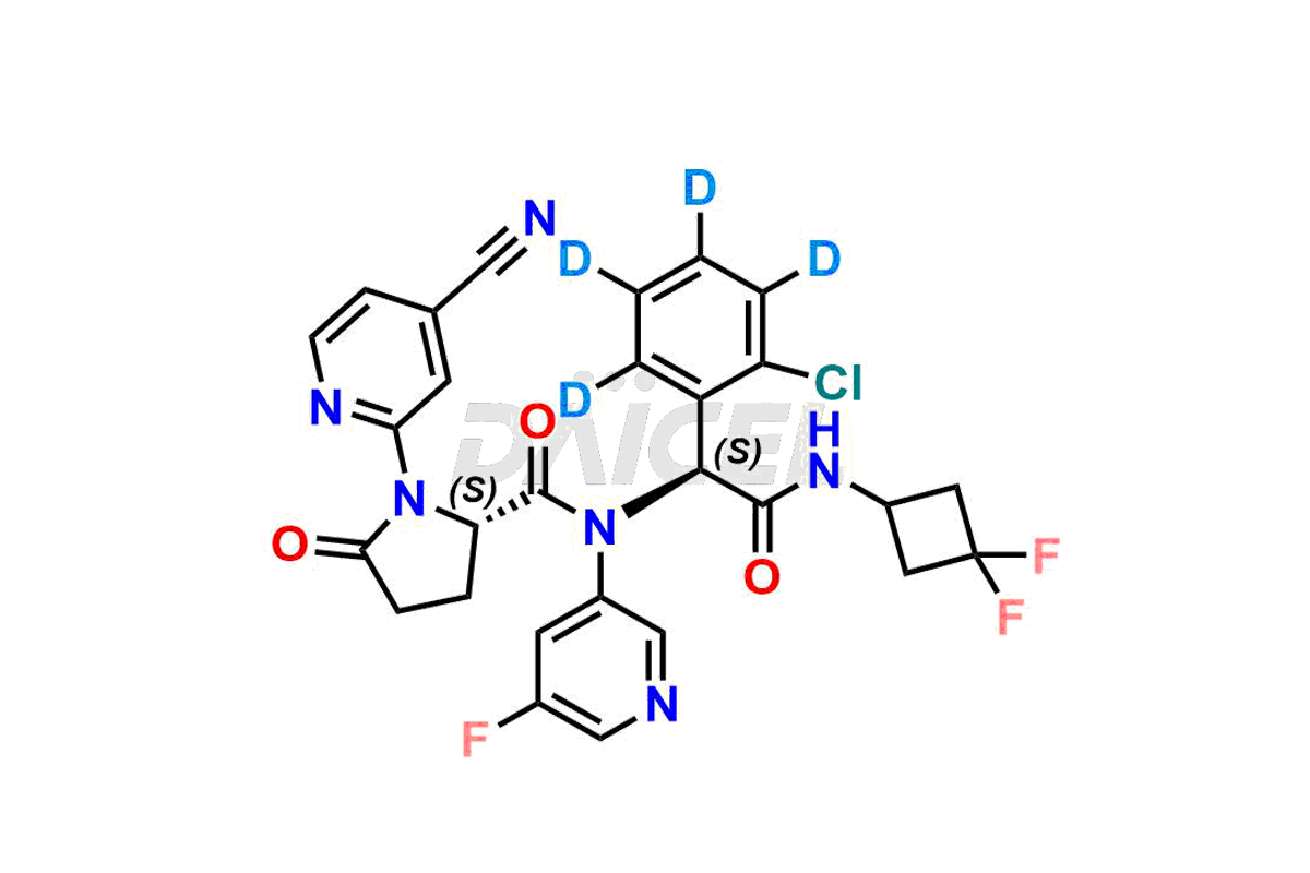 | IUPAC NAME | (S)-N-((S)-1-(2-chlorophenyl-3,4,5,6-d4)-2-((3,3-difluorocyclobutyl)amino)-2-oxoethyl)-1-(4-cyanopyridin-2-yl)-N-(5-fluoropyridin-3-yl)-5-oxopyrrolidine-2-carboxamide |