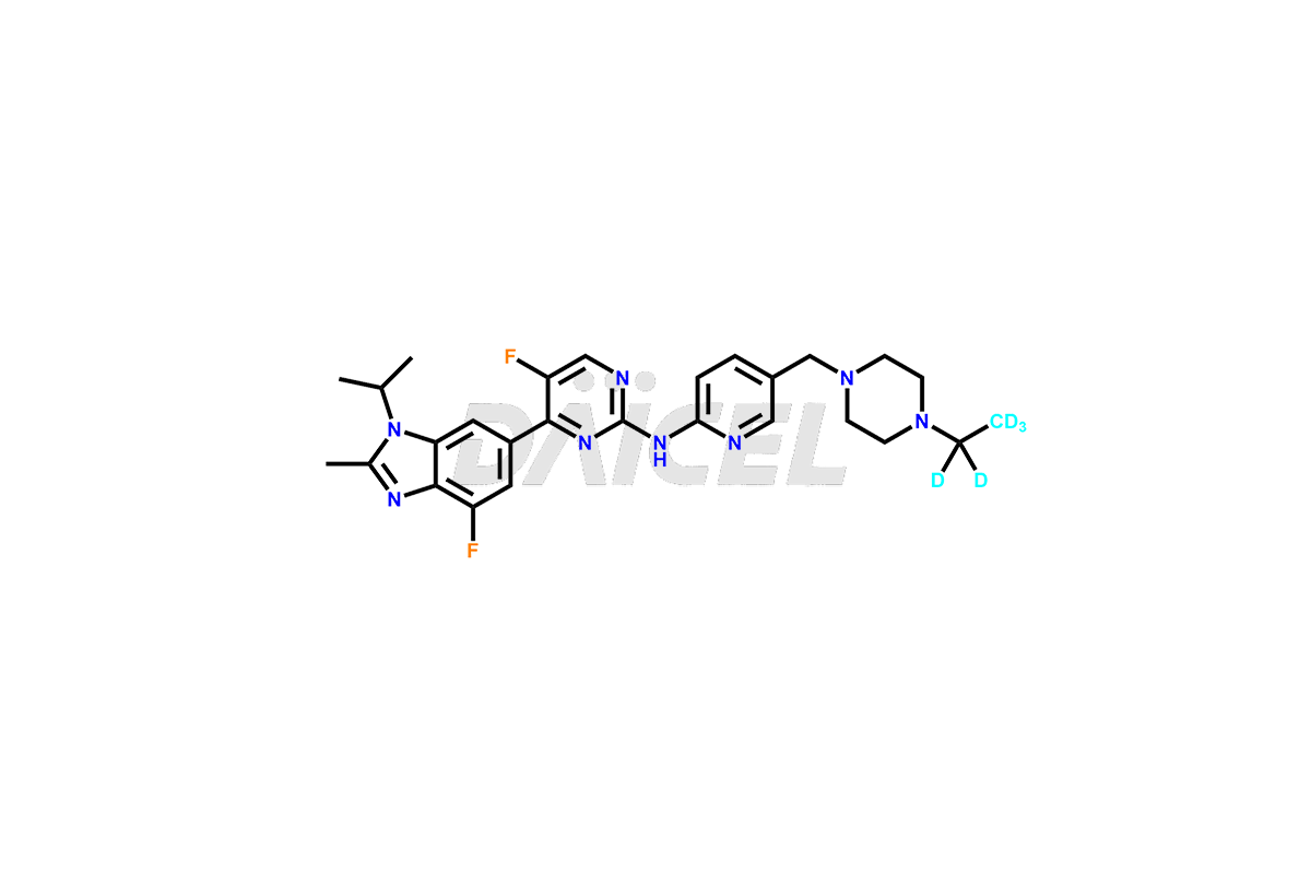 | IUPAC NAME | N-(5-((4-ethylpiperazin-1-yl)methyl)pyridin-2-yl)-5-fluoro-2-(4-fluoro-1-isopropyl-2-methyl-1H-benzo[d]imidazol-6-yl)pyrimidin-4-amine |