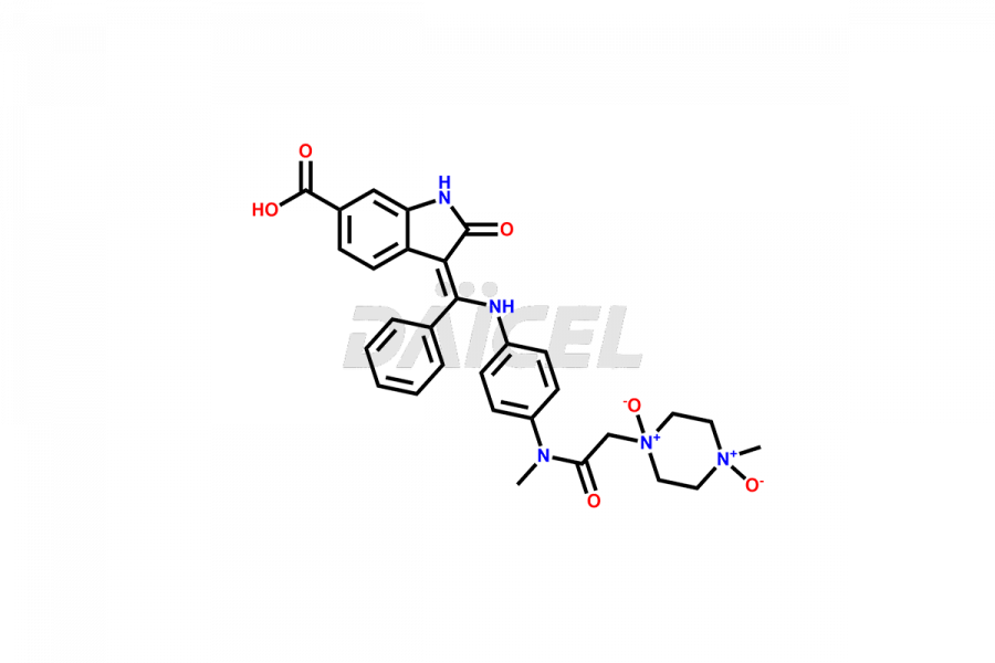 | IUPAC NAME | (Z)-1-(2-((4-(((6-carboxy-2-oxoindolin-3-ylidene)(phenyl)methyl)amino)phenyl)(methyl)amino)-2-oxoethyl)-4-methylpiperazine 1,4-dioxide |