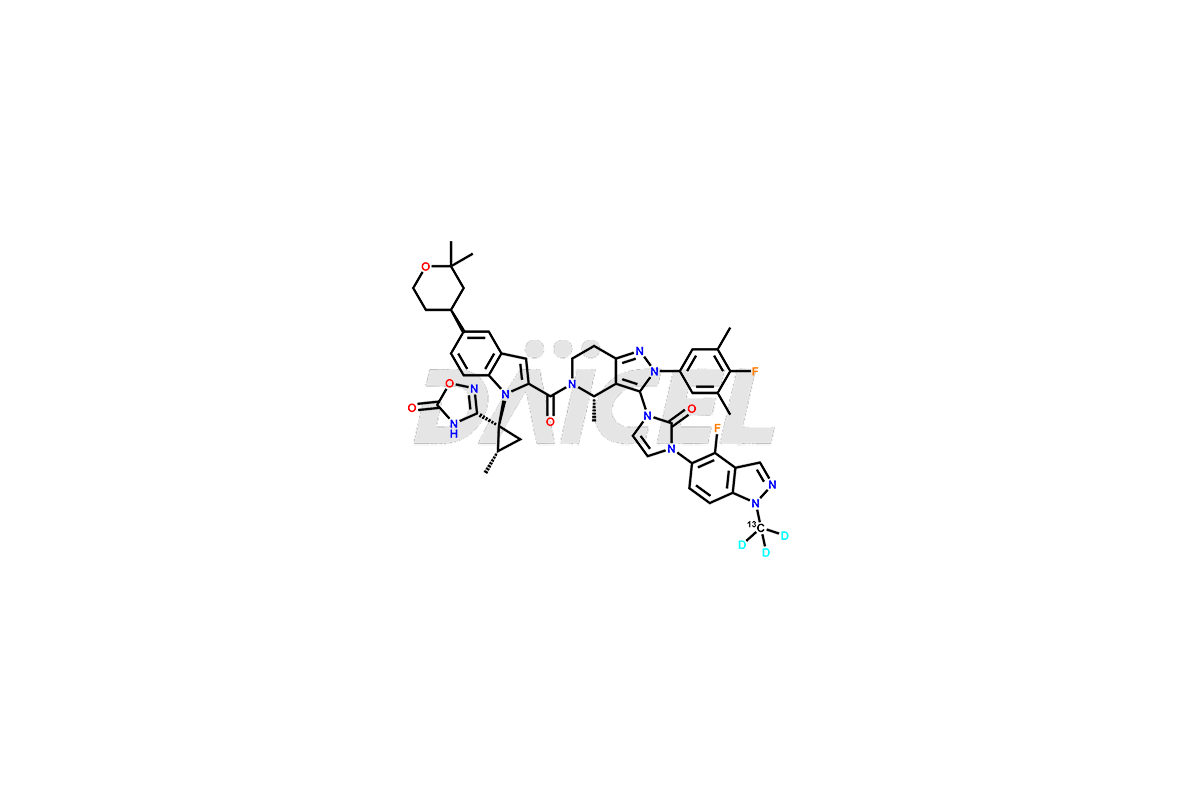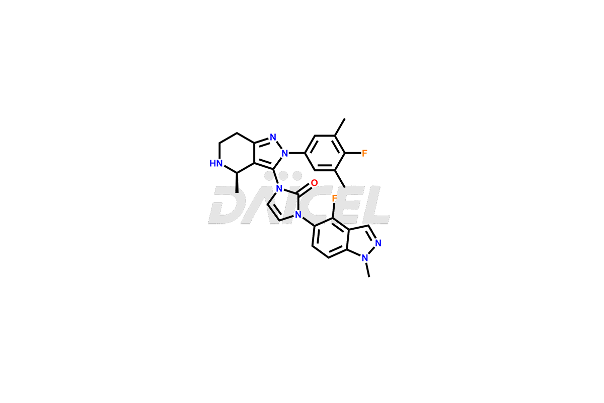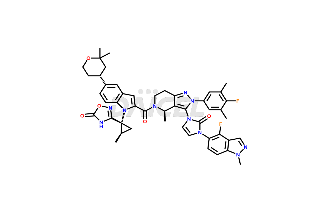 | IUPAC Name | 3-((1R,2R)-1-(5-((R)-2,2-dimethyltetrahydro-2H-pyran-4-yl)-2-((R)-3-(3-(4-fluoro-1-methyl-1H-indazol-5-yl)-2-oxo-2,3-dihydro-1H-imidazol-1-yl)-2-(4-fluoro-3,5-dimethylphenyl)-4-methyl-4,5,6,7-tetrahydro-2H-pyrazolo[4,3-c]pyridine-5-carbonyl)-1H-indol-1-yl)-2-methylcyclopropyl)-1,2,4-oxadiazol-5(4H)-one |