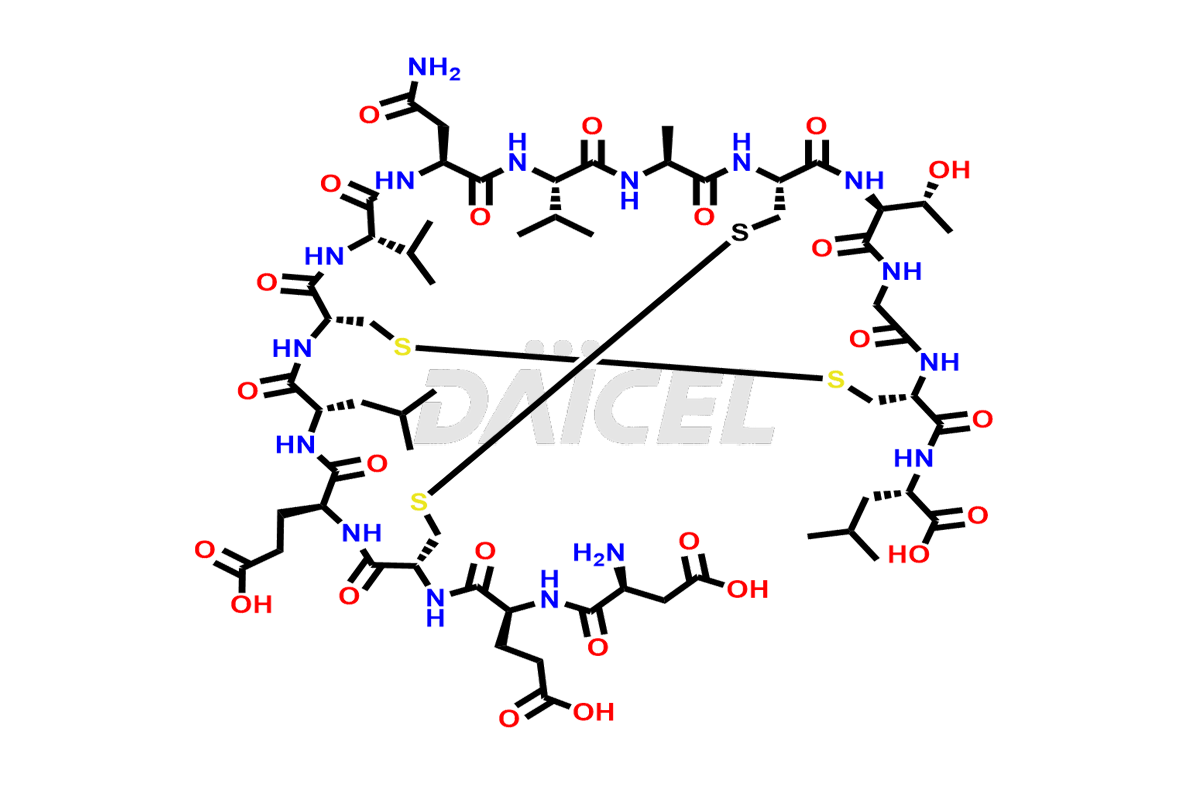 IUPAC NAME H-Asp-Glu-Cys-Glu-Leu-Cys-Val-Asn-Val-Ala-Cys-Thr-Gly-Cys-Leu-OH (bis disulfide bridge between 4-12 and 7-15 cysteines)