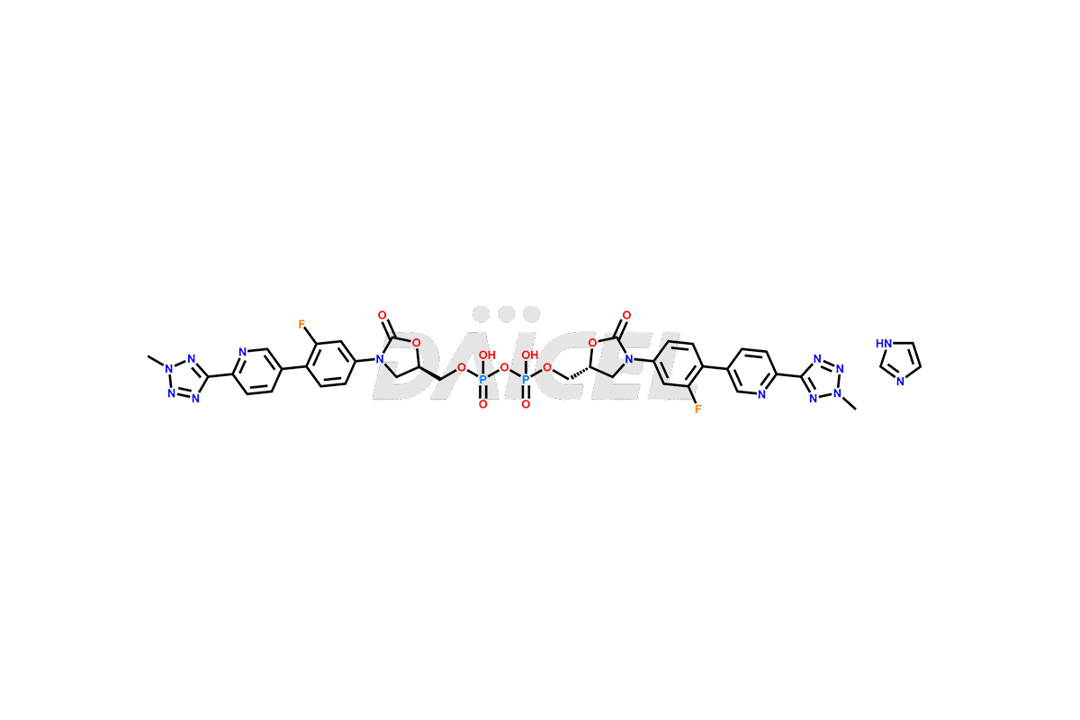 IUPAC Name Diphosphoric acid, P,P′-bis[[(5R)-3-[3-fluoro-4-[6-(2-methyl-2H-tetrazol-5-yl)-3-pyridinyl]phenyl]-2-oxo-5-oxazolidinyl]methyl] ester, compd. with 1H-imidazole (1:2)