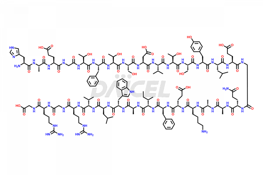 | IUPAC NAME | His-Ala-Glu-Gly-Thr-Phe-Thr-Ser-Asp-Val-Thr-Ser-Tyr-Leu-Glu-Gly-Gln-Ala-Ala-Lys-Glu-Phe-Ile-Ala-Trp-Leu-Val-Arg-Gly-Arg-Gly-OH |