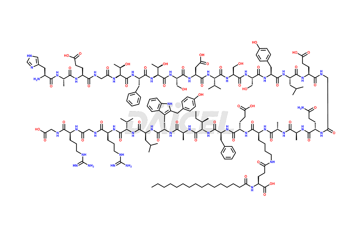IUPAC Name His-Ala-Glu-Gly-Thr-Phe-Thr-Ser-Asp-Val-Ser-Ser-Tyr-Leu-Glu-Gly-Gln-Ala-Ala-Lys(γ-Glu-palmitoyl)-Glu-Phe-Ile-Ala-Trp(p-OH-Benzyl)-Leu-Val-Arg-Gly-Arg-Gly-OH